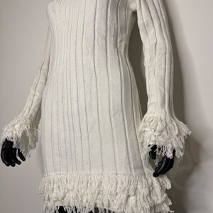 MISSGUIDED Ribbed Knit Mini Dress With Fringe Winter Long Sleeve Turtleneck