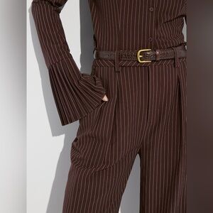 Striped Pleated Wide-Leg Pants without Belt Commense M KK3 or 10