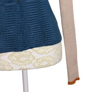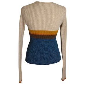 Free People Frequency Henley Sweater Crop Color Block V Neck Tan XS
