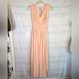 This elegant peach maxi dress offers a timeless look with its flowing design. Perfect for any occasion, it combines style and comfort effortlessly.