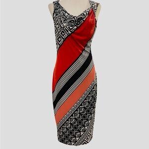 Evan Picone Red and Black Geometric Midi Dress