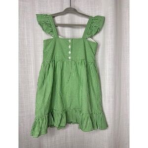 Janie And Jack Dress Kids Size 4 Green White Gingham Ruffle Sleeve Mini Button Front Summer Casual Chic