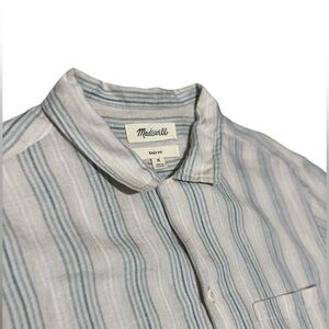 MADEWELL - Easy fit Button down 100% Linen Short Sleeve Shirt - Ivory & Blue