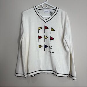 Liz Claiborne Sport Cotton Golf Novelty Print Collegiate Preppy Sweater Large