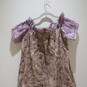 FREE PEOPLE Sophie Off Shoulder Two Tone Paisley Print Mini Dress in Light Purple - Women's Size Medium