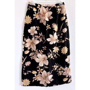 Alfred Dunner Skirt Womens 6P Black Floral Linen Midi Vintage Career Coastal