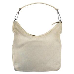 GUCCI GG Canvas Shoulder Bag Suede White Silver 000 0602 Auth am10075