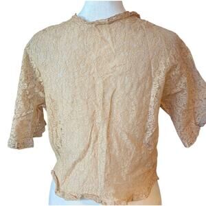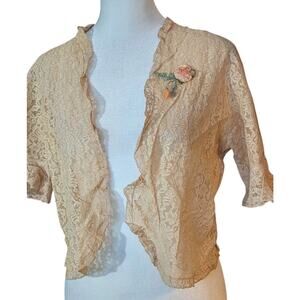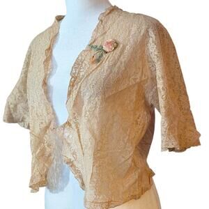 Vtg 1930s Victorian Cottage Rose Lace Bed Jacket Bolero Top Women M Cream Pink
