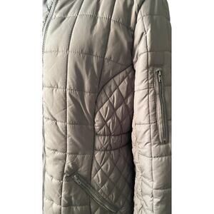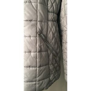 Totes Womens M Quilted Puffer Jacket Gray Hood Faux Fur Warm Winter Coat Medium