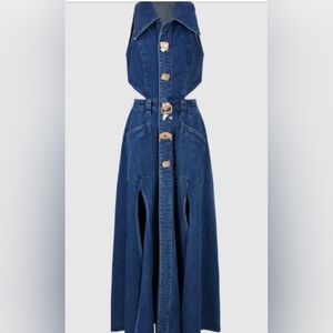 Elevate your style with the Blue Denim Halter Maxi Dress. This chic dress features a halter neckline and a flattering maxi length, perfect for any occasion. The rich blue denim adds a touch of sophistication to your wardrobe.