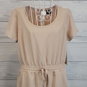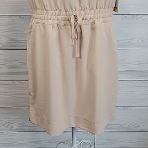 Pullover style casual midi dress by 32° Cool with a rounded neckline, elastic waistband with drawstring tie knot, and hidden hip pockets. NWT