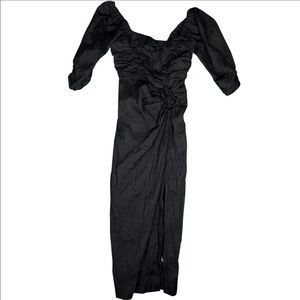 Free People Dress Womens XS Looking Stunning Black Puff Sleeve Slit Ruched Midi