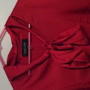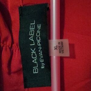 Evan-Picone Black Label Red Satin Tie Neck Long Sleeve Top XL