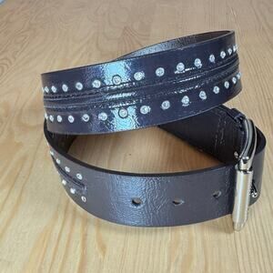 Michael Kors Womens Belt Brown Patent Leather Studded Rhinestones Glam Y2K M 90s