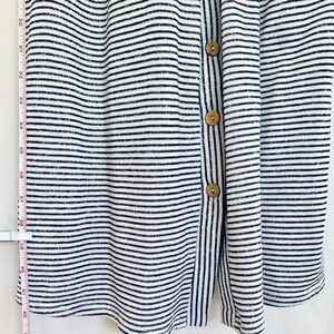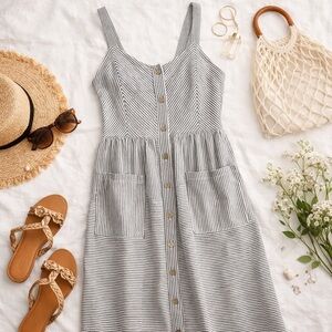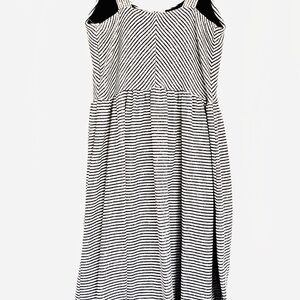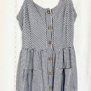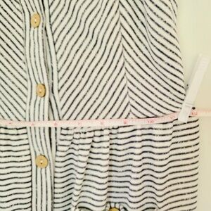Gently used Hailey&Co Striped Black&White button dress.Seller not responsible for brand sizing,fit,smell of item.It is the responsibility of buyer to be knowledgeable of their own sizing, fit of clothing.All sales final,as is,no returns.I video& photo to prevent fraudulent activity or misunderstandings. Measurements are approx &shown in pic.There is some give in material.