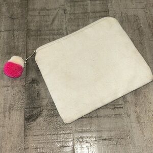 White Sead Beaded Purse “Choose Happy" Pom Pom Accent Pastel Lettering Coquettes