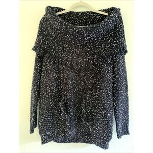 POL Chunky Knit Oversized Sweater Off Shoulder Cowl Turtleneck Blue Small Boxy