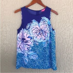 Lilly Pulitzer Iona Floral Sleeveless Top Mr Peacock Blue