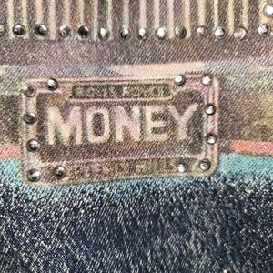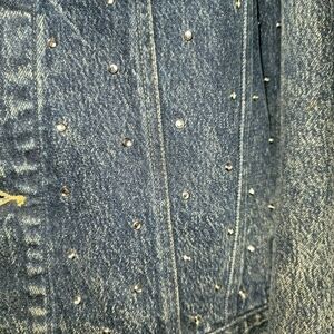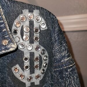 This Vintage timeless jacket is hand painted and appliques galore. What a statement piece! There are 2 empty slots on back where crystals were purposely left off by artist. So much detail and hand craftsmanship went into this garment. Be envied by all when you wear this classic!