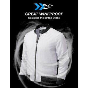 Men's White Lightweight Casual Style Bomber Jacket Golf Coat Zip Up Pockets