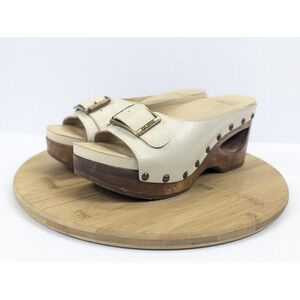 Dansko Adeline Wedge Wood Womans 9.5 Sandals Slide Buckle Platform Slip On