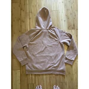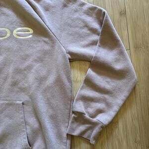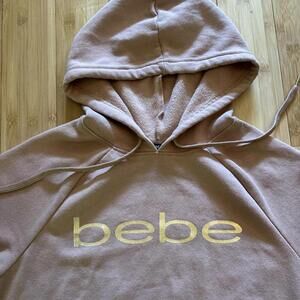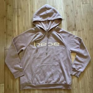 BEBE Women’s Pink Metallic Logo Raglan Sleeve Fleece Hoodie Sweatshirt Size L