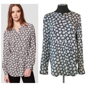 LOFT Women's Black Floral Sketch Pullover Long Sleeve Blouse Size XS