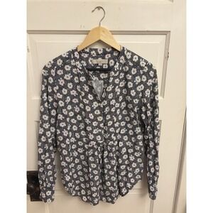 Pullover black floral print top with long sleeves. Button front. 100% Rayon. Machine washable. Size XS.