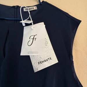 FEHAUTE Navy Blue Ruched Sheath Dress Cap Sleeve Business Casual Women US 12