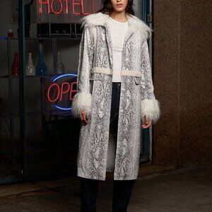 Chic Women's Snake Skin Print Faux fur Trimmed Long Jacket Coat