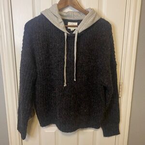 Keywords: aerie hoodie, textured knit, heathered sweatshirt, contrast hood, casual wear, loungewear, weekend style, cozy knit, athleisure, pullover hoodie, soft sweater, everyday comfort
