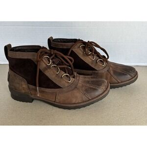UGG Waterproof Brown Leather Lace Up Ankle Boots Winter Hiking Size 8 (1095156)