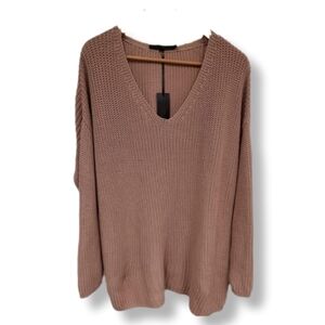 Jenni Kayne Pink V-Neck Sweater Ribbed Knit