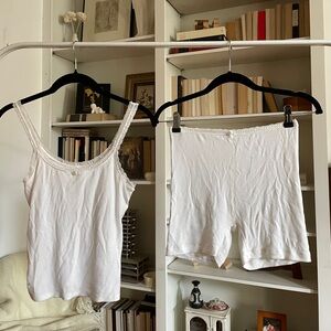 These lounge pants are like new, I only ever wore it once! But the pants are buttery soft and lovely. I’m also selling the matching biker shorts and tank top and would be happy to do a bundle with a great discount to get you the whole set. I added some pictures of the set at the end for you to see :)