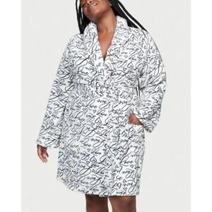 Victoria's Secret Plush Oversized Robe LOVE Script Womens Black White Medium Y2K