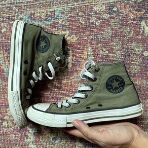 Converse Chuck Taylor Kids High-Top Sneakers Size 3- Olive Green with Black
