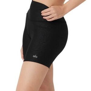 Alo yoga 5" Airlift High-Waist Leopard Debossed Biker Short black xs