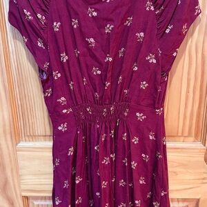 NWT Free people burgundy dress with floral pattern. Features a cute tie detail at bust. Size S