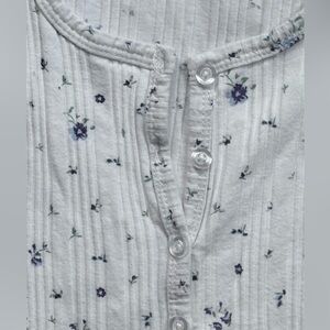 Chic ribbed button-down with blue floral design. Ideal for casual wear.