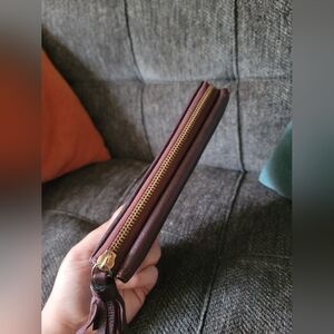 Elegant leather wallet by Kate Spade. Features a tassel zipper.