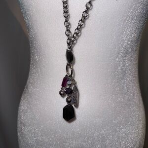 Chic necklace with purple and silver charms. Perfect for any occasion and can be worn long or short.
