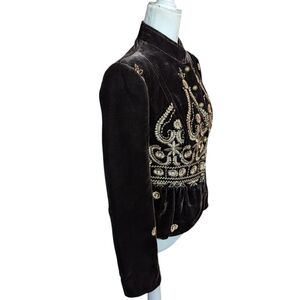 People Like Frank Anthropologie Brown Peplem Velvet Blazer Gold Embroidery Sz XS