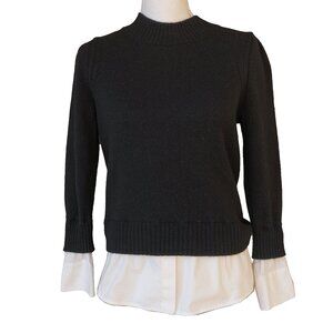Brochu Walker Twofer Sweater Cashmere Wool Black Goth Layered Crew White Cuff Pullover, size small. This Brochu Walker layered twofer sweater is a sweater over shirt style that feels 90s.