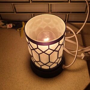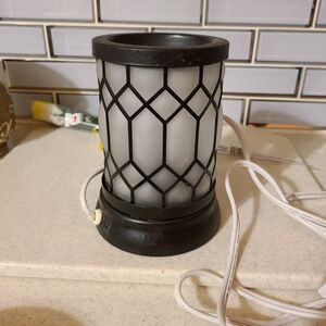 Illuminate your space with this elegant black and white wax warmer. Its stylish design adds a modern touch to any room.