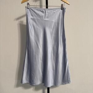 Club Monaco Silk Charmeuse Pale Blue Midi Skirt Size 4 Designer MSRP $268
