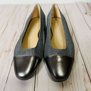 Stuart Weitzman Sleek Flat Gunmetal Silver Pewter Sparkle Glitter Flats NEW! Sz 7