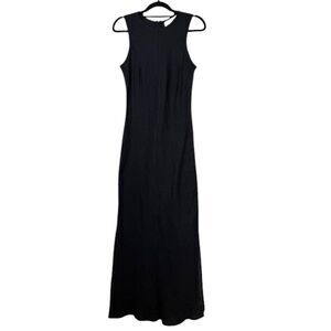 Faithfull the Brand Valenza Linen Maxi Dress Black Sleeveless Size 6