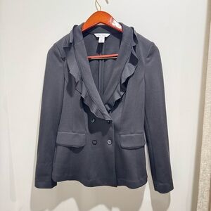 Express Black 100% Wool Long Coat Removable Faux Fur Collar Hidden Buttons 5/6