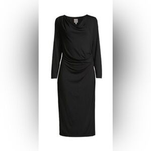 NIC+ZOE Eaze Black Long Sleeve Ruched Draped Cowl Neck Dress