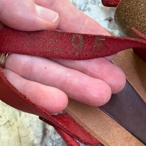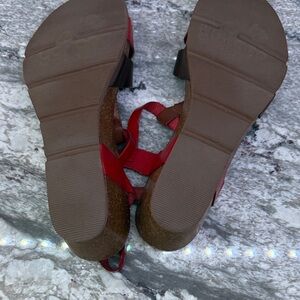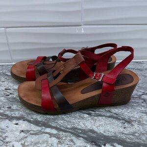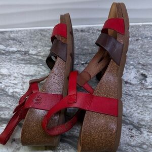 Step out in style with these chic red and brown sandals. Perfect for any occasion, they offer both comfort and elegance.